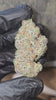 The bag appeal on D’Lish is absolutely insane. These are massive, uniquely structured buds exploding with every color in the rainbow 🎨💜💚. Vibrant greens and deep purples dominate the base, layered with blue sprinkles, blue-capped leaves, and long orange and yellow hairs bursting out of every nug 🔥🧡. The buds look hand-painted — loud, exotic, and impossible to fake.